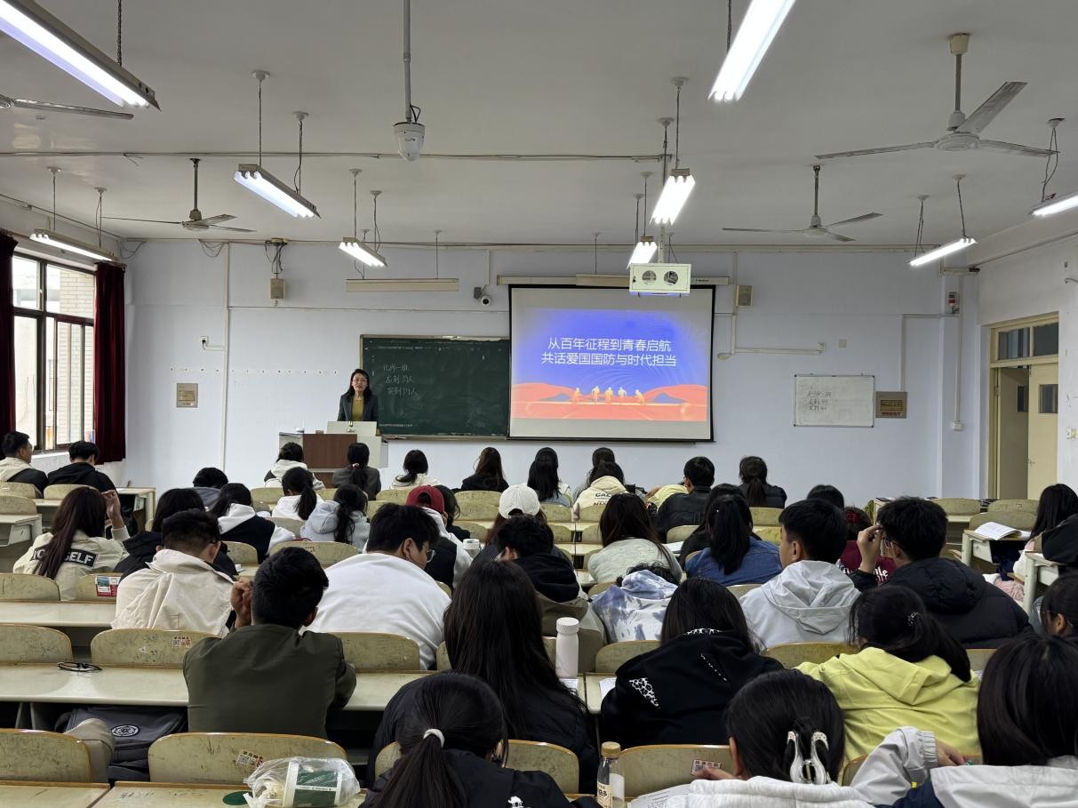 为厚植青年学子爱国情怀,强化国防意识,引导学生从百年征程中感悟时代责任,自觉将个人理想融入强国强军伟大实践,10月17日上午,红宝石官网娱乐网址党委书记于求实楼407教室讲授“从百年征程到青春启航 共话爱国国防与时代担当”专题思政课,2025级化学师范一班、二班全体学生参加。