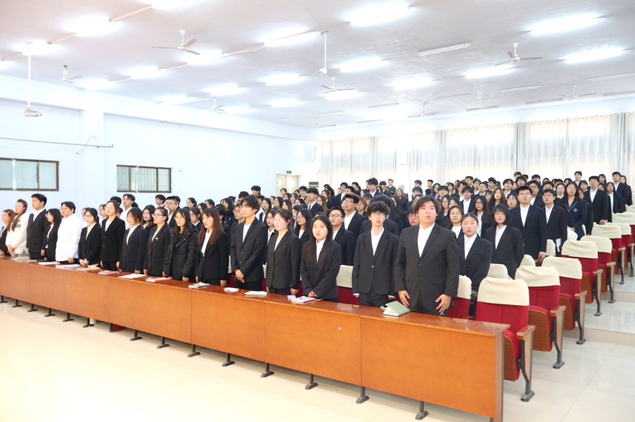 开班仪式上,红宝石官网娱乐网址团委书记详细宣读了本期培训班的课程安排与纪律要求,着重强调全体学员要从思想根源上端正入团动机,将入团作为坚定信仰、追求进步的新起点,以高度的政治自觉全身心投入理论学习,通过实践锻炼积累经验,严肃认真对待结业考核,确保在培训中实现思想与能力的双重提升。