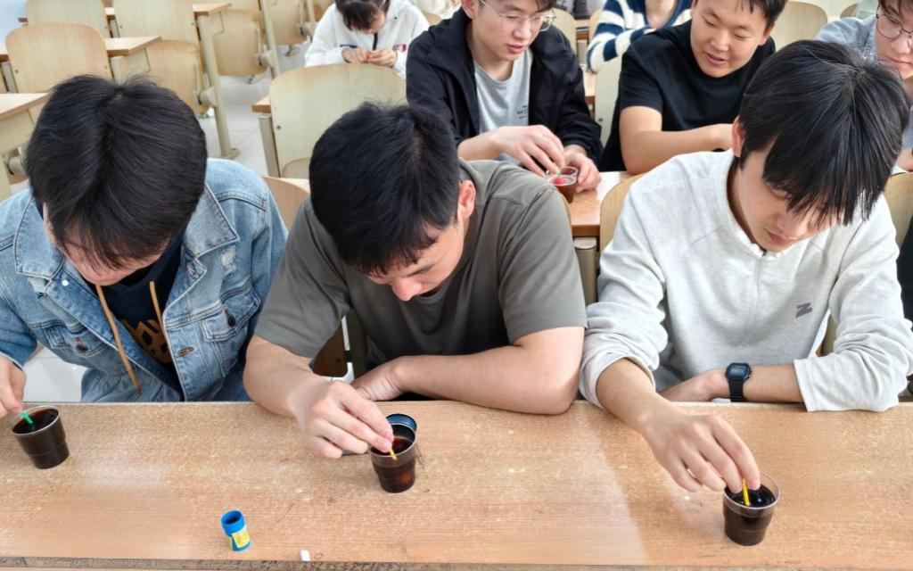 活动伊始,负责人以趣味问答的形式开展互动,并借助精心制作的幻灯片与视频片段,向大家展示了可能发生的一系列有趣的颜色变化。到了动手实验环节,学生根据实验内容自主进行实践探索,观察溶液颜色的奇妙变化,并不时分享自己的发现和想法。整个现场充满了探索与求知的浓厚氛围,学生在实践中真切感受到了化学的魅力。