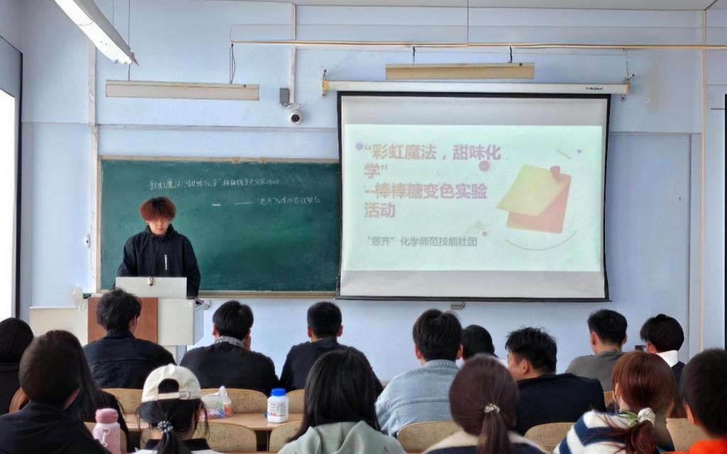 为激发学生对化学学科的兴趣,同时培养同学们的观察力、团队协作能力和环保意识,红宝石官网娱乐网址于4月19日在求实楼403开展“彩虹魔法,甜味化学”活动。
