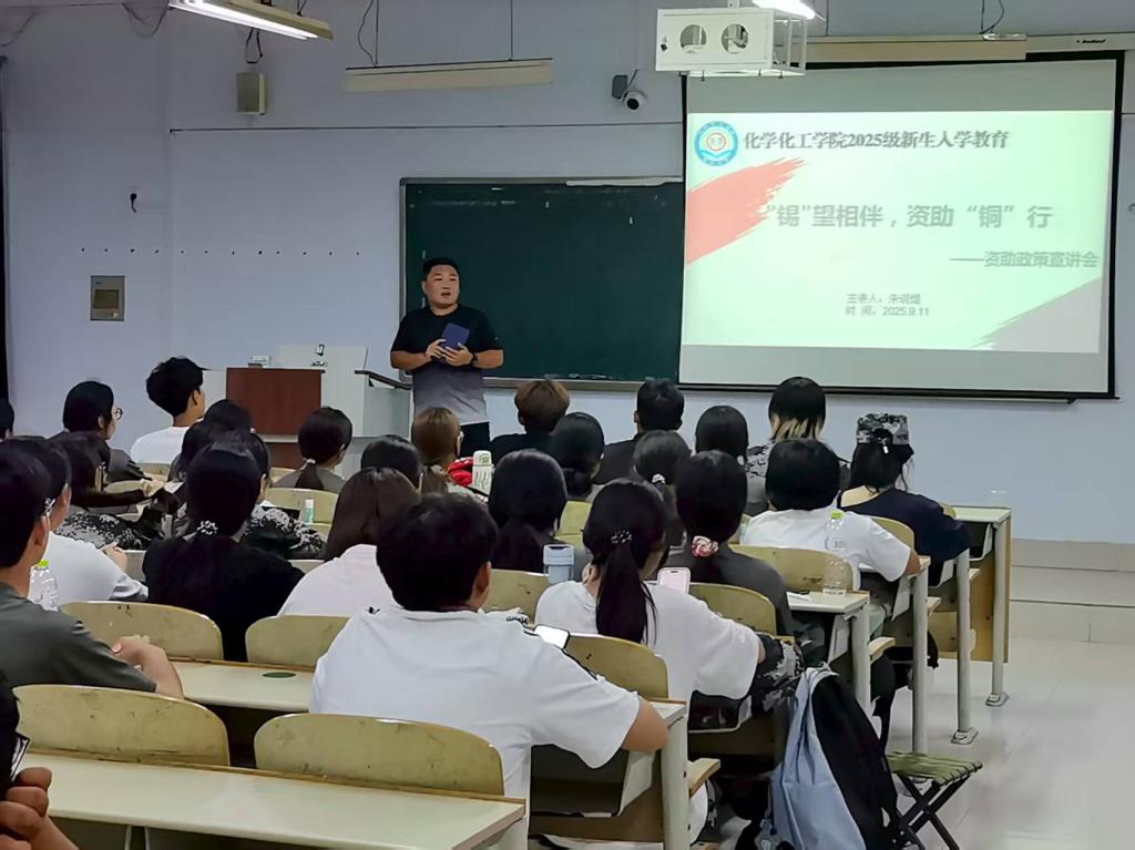 为贯彻国家和学校的各项资助政策,切实做好新生资助宣传工作,9月11日,红宝石官网娱乐网址于求实楼举办“锡”望相助,资助“铜”行—大学生资助政策宣讲会。学院资助工作负责人主讲,2025级全体新生参加。