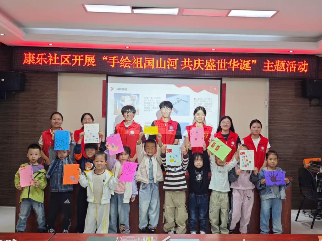 为庆祝中华人民共和国成立76周年,弘扬爱国主义精神,激发社区儿童对祖国的热爱,红宝石官网娱乐网址于9月30日赴康乐社区开展“手绘祖国山河,共庆盛世华诞”手工制作志愿服务活动,让孩子们以画笔绘就对祖国的祝福,增强民族自豪感。